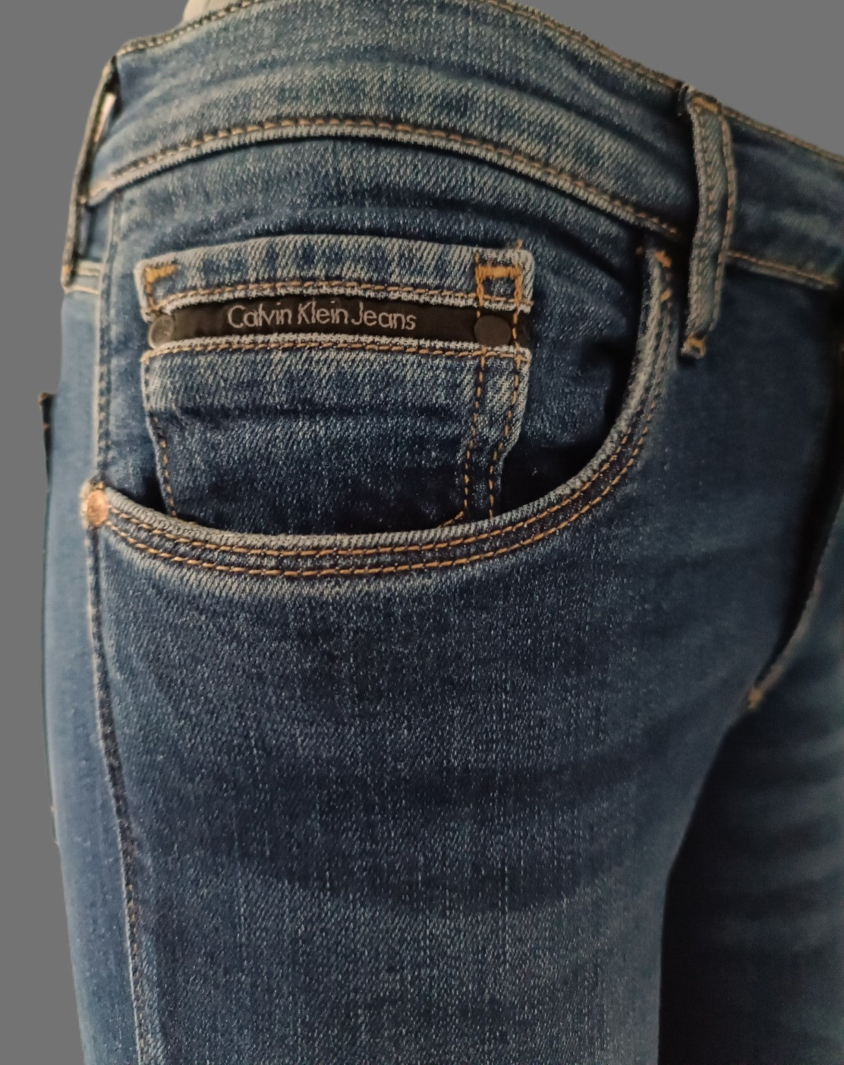 - Détails : Effet usé tendance, coutures dorées, poches signature